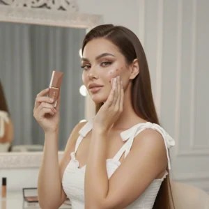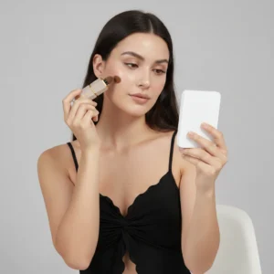 نقطه گذاری: با اپلیکاتور محصول، دو یا سه نقطه کوچک زیر استخوان گونه و دو طرف استخوان بینی بگذارید.
